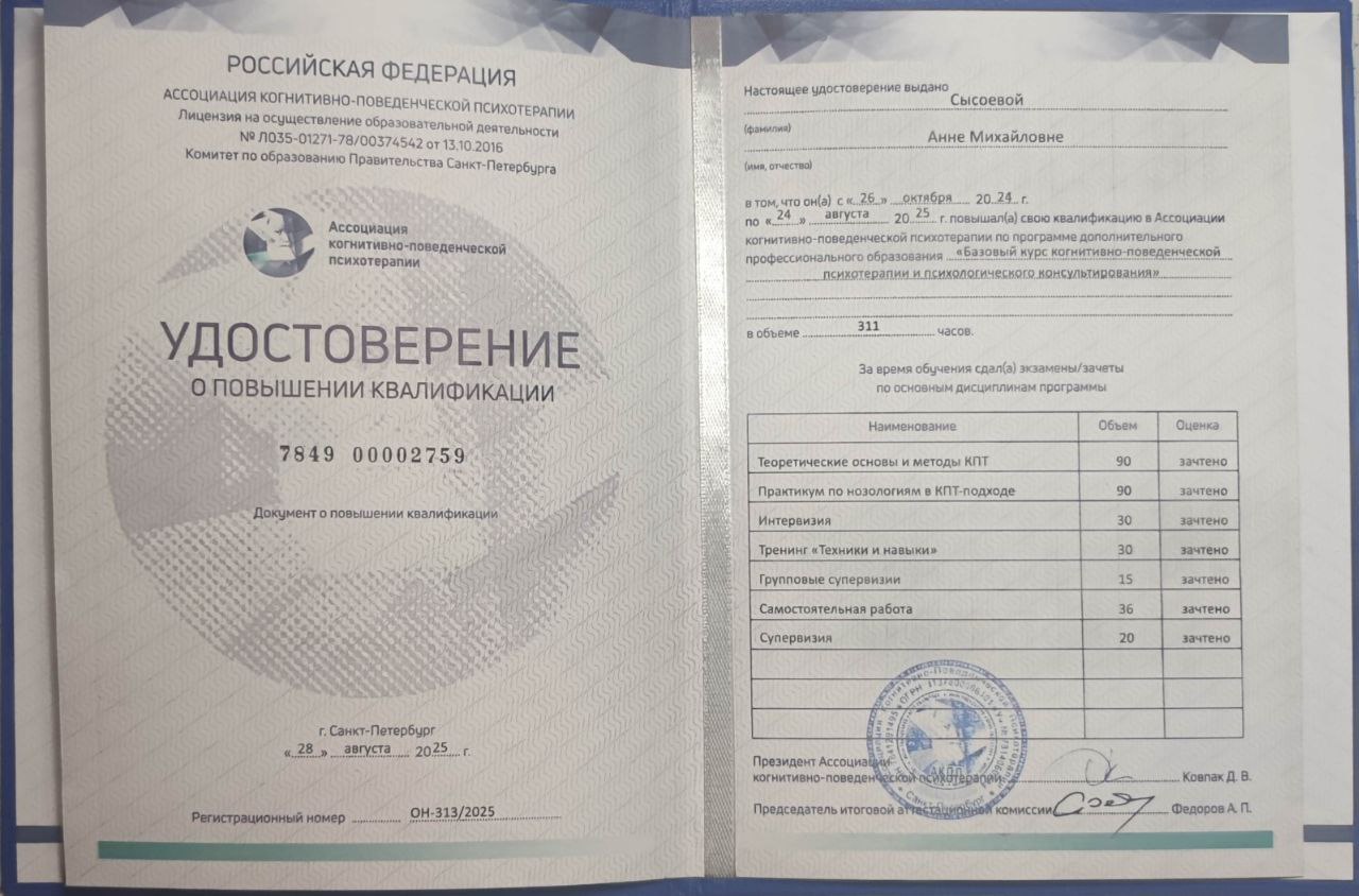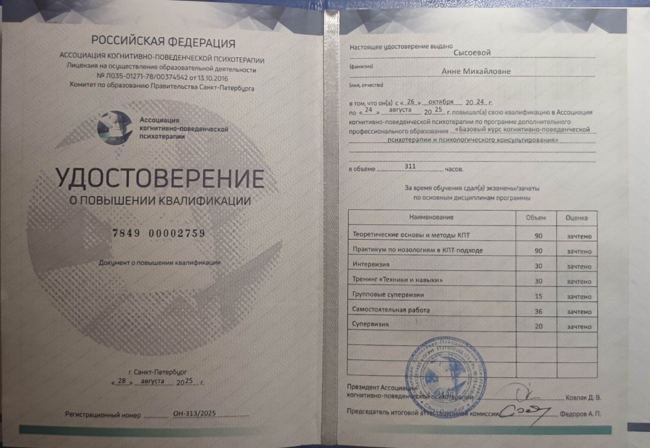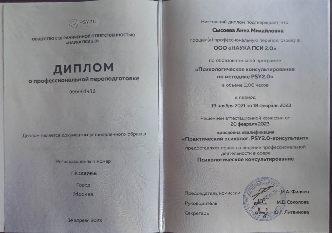 Это не монолог и не магия. Это совместное исследование в безопасном и поддерживающем пространстве, где я выступаю вашим проводником и экспертом по психическим процессам. Моя эмпатия и натренированный взгляд помогают считывать нюансы и направлять процесс в нужное русло, но главный герой и автор изменений — это вы.