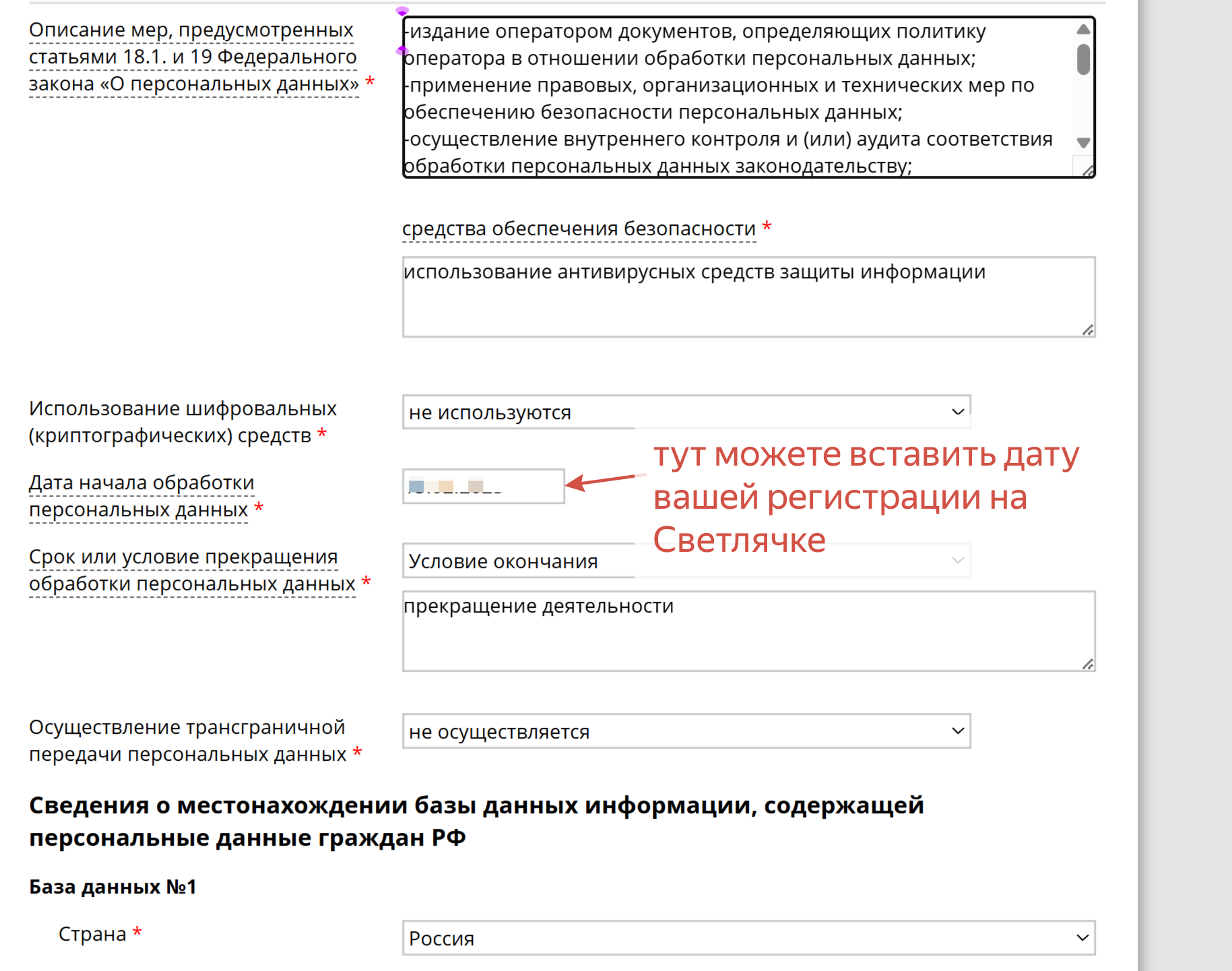 Сведения о местонахождении базы данных: Укажите свой адрес регистрации, а не местонахождения.