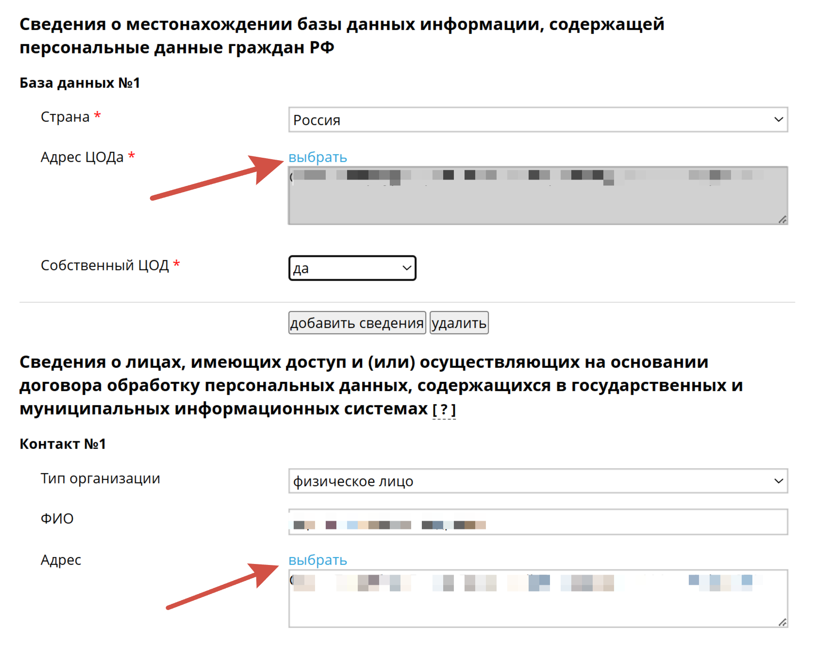 Затем заполняете данные о том, где храните данные, и кто имеет к ним доступ. Обычно, самозанятые сюда вносят данные о себе и о своем адресе: